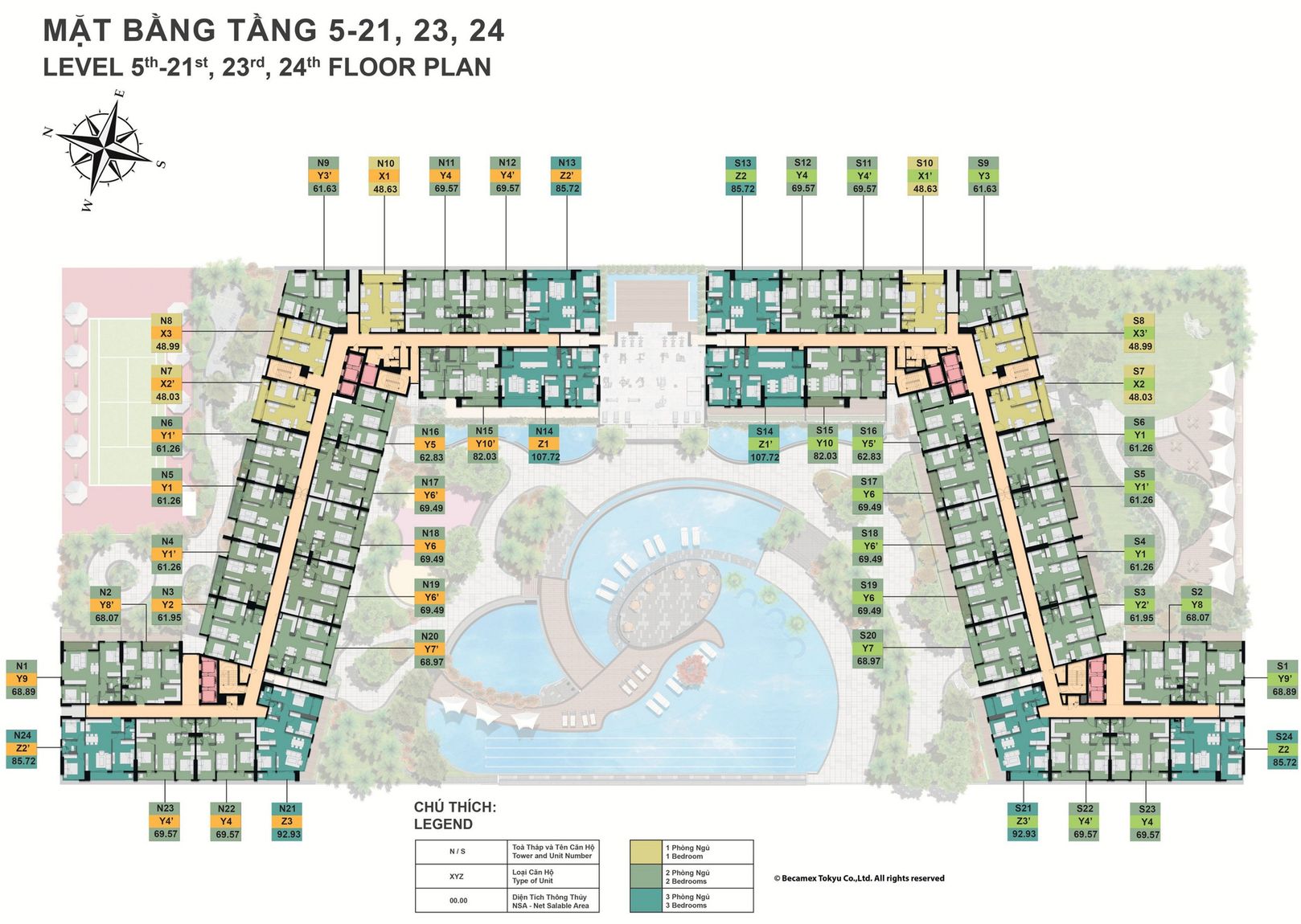 Căn 3 PN: Diện tích 85m² – 107m² (Không gian rộng rãi cho gia đình đa thế hệ).