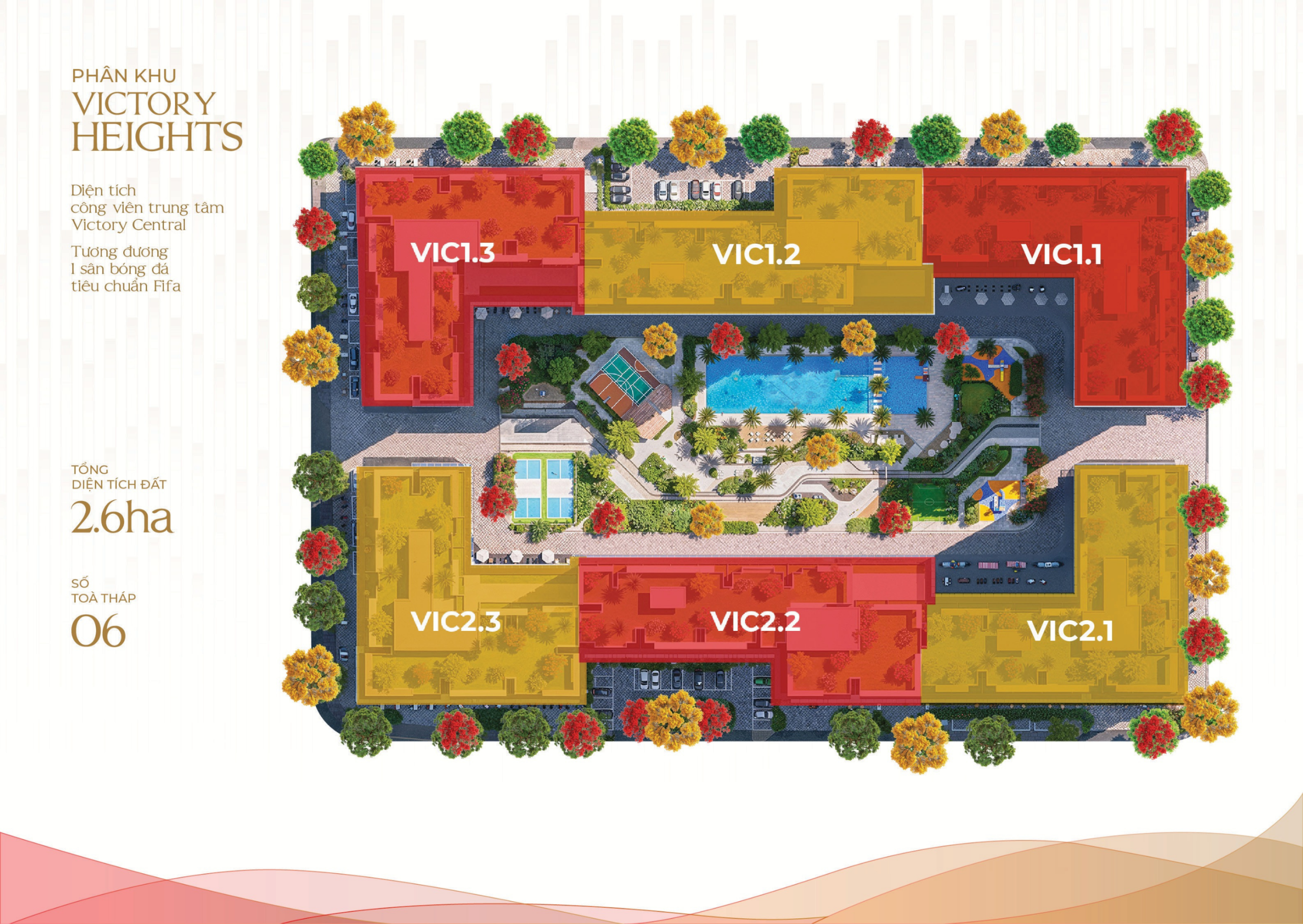 - Phân khu Victory Heights (Phân khu C): Quy hoạch gồm 6 tòa tháp, điểm nhấn về sự thịnh vượng và bền vững.
