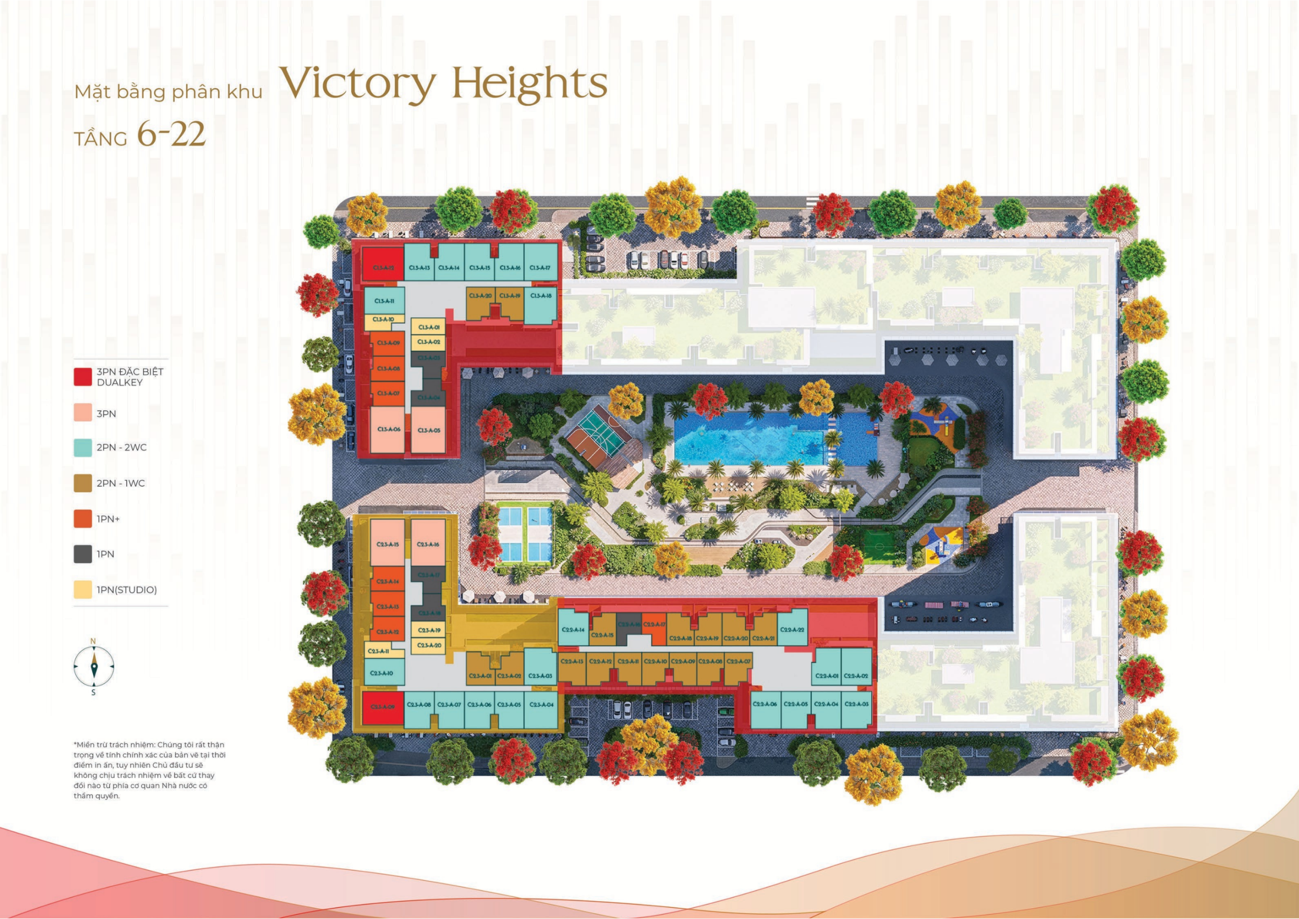 | Chiều cao tầng | Từ 18 đến 33 tầng (tùy phân khu) |