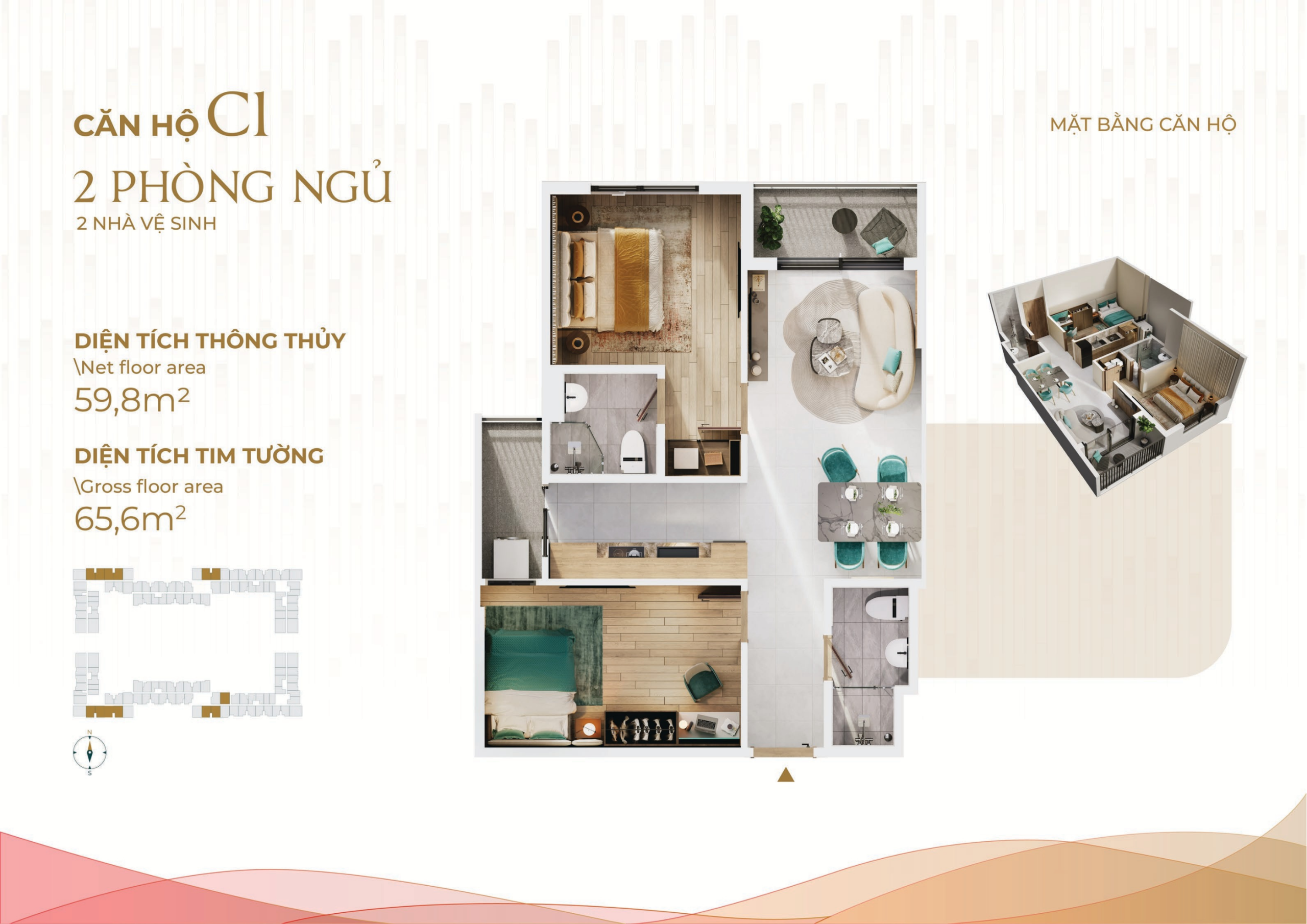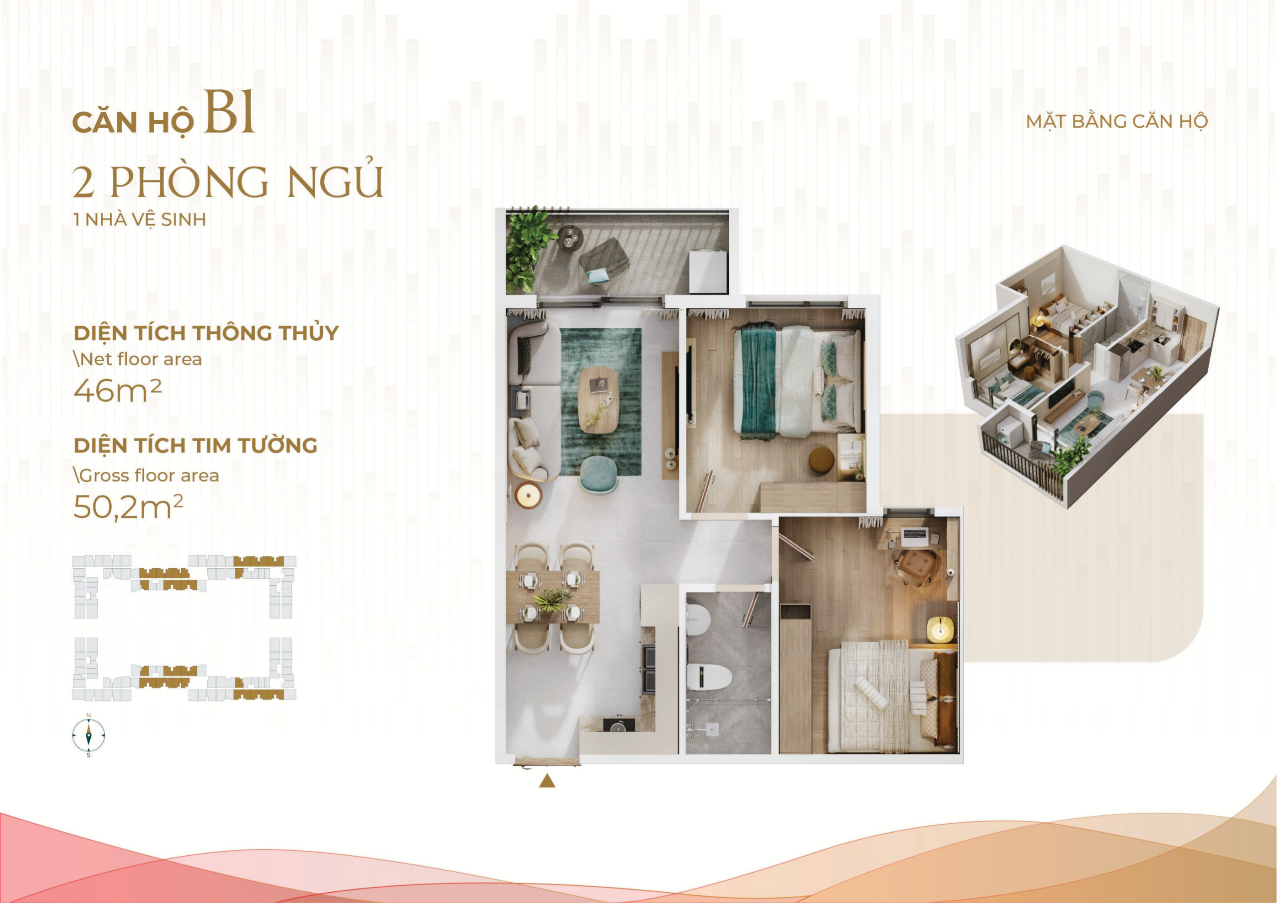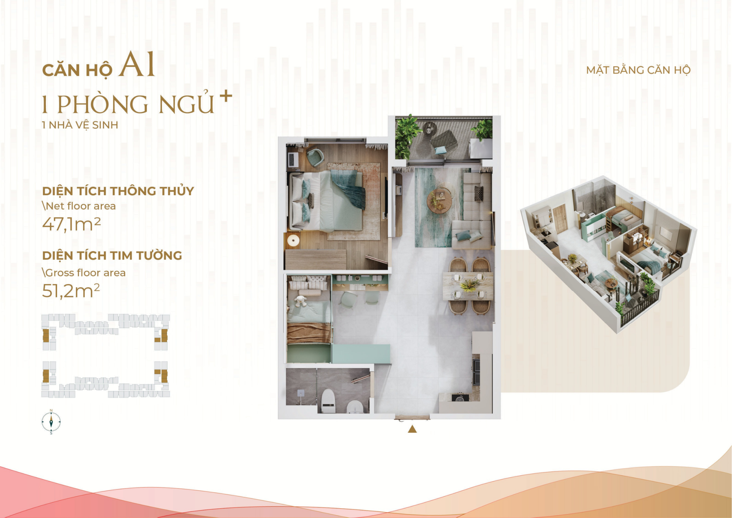 - Căn hộ 1PN – 2PN – 3PN: Thiết kế linh hoạt cho các gia đình trẻ và gia đình đa thế hệ.